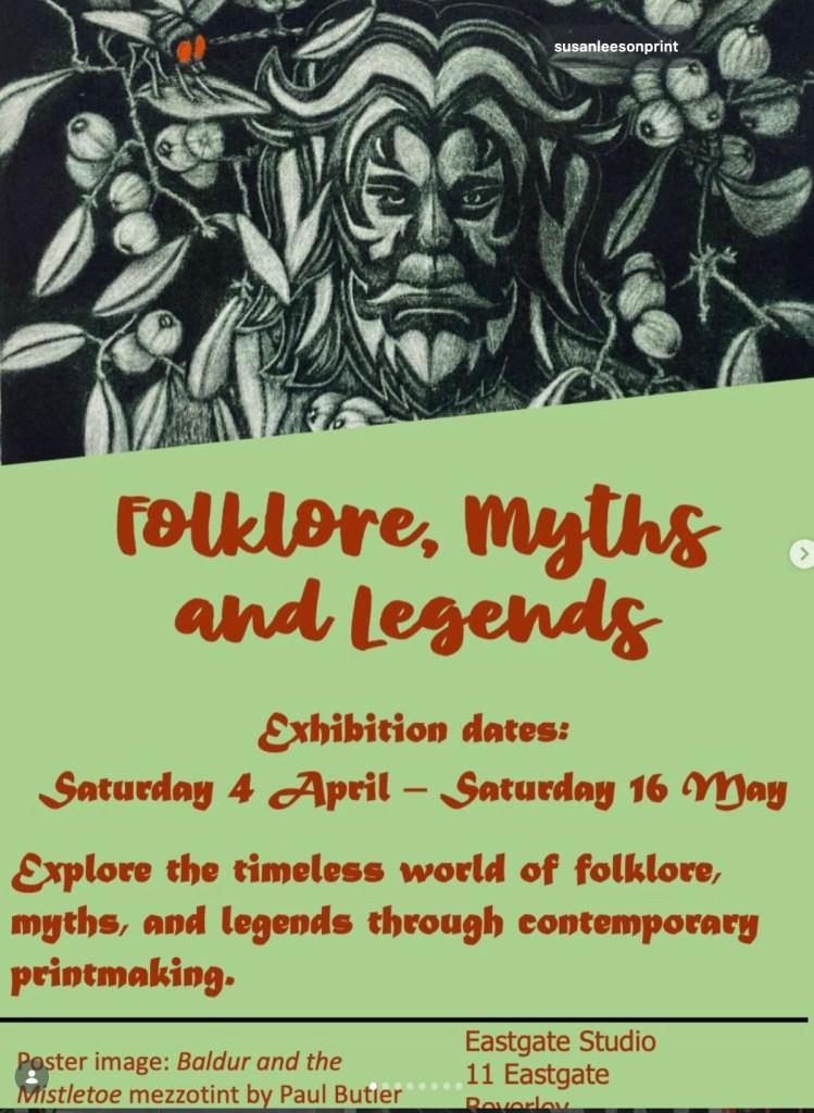 I am very happy to have my etchings and linoprint in this collective exhibition in U.K, wich is an evocative exhibition exploring the timeless world of folklore, myths and legends through contemporary printmaking.